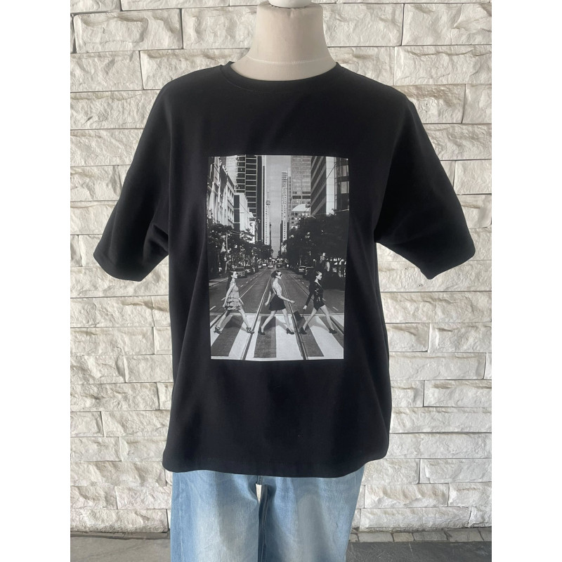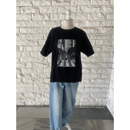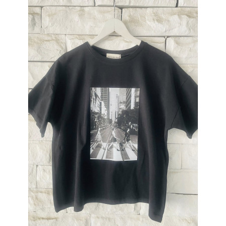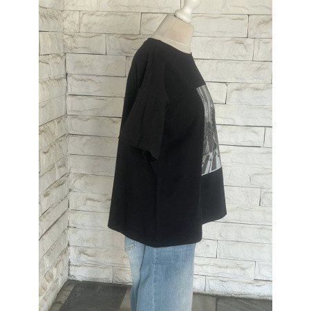 T-shirt damski bawełniany oversize CITY MADAME SUE czarny