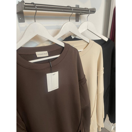 Bluza LONG POLSKIEJ FIRMY Madame Sue to premium produkt w oversizowym kroju z charakterystyczną strukturą otwartych i widocznych przeszyć . Ta bluza to wygoda i styl w jednym, jest idealna na każdy dzień roku i sprawdzi się w wszystkich modowych sytuacjach. Wspaniale prezentuje się z ciepłą kurtką. kamizelką i wysokimi butami.