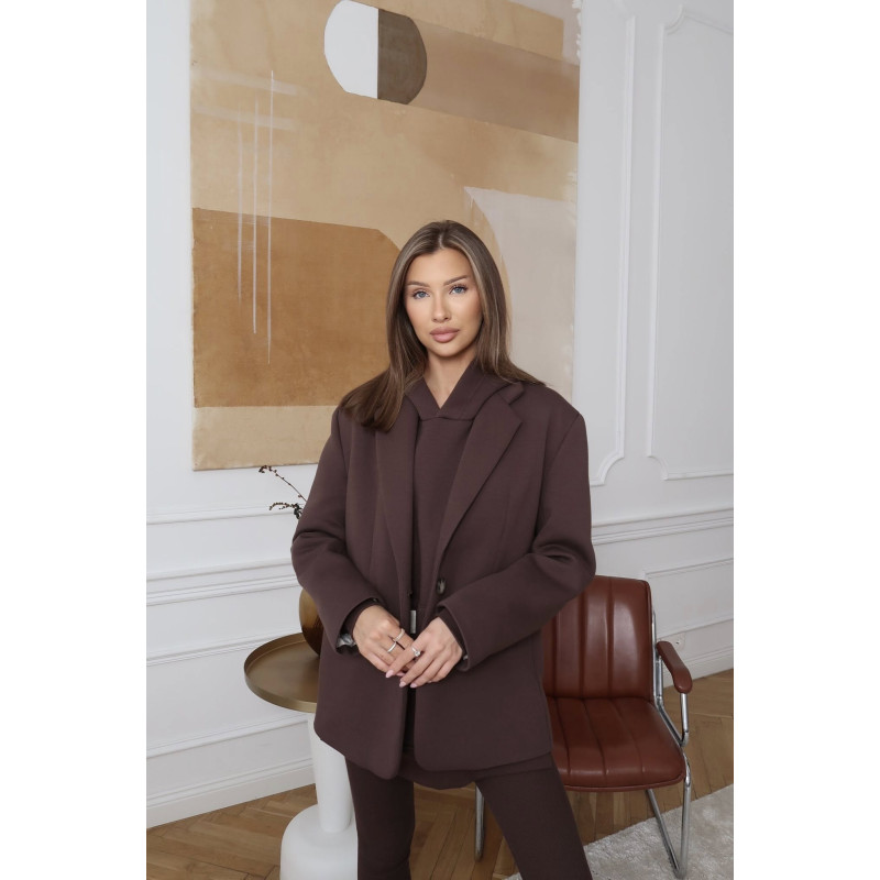 To wiralowy krój marynarki polskiej marki LE MUE, modny kolor i wzór w sezonie 25/26 . Elegancja w wygodnym stylu oversize. Szeroki kołnierz dodaje oryginalności i nonszalancji. To doskonały wybór dla osób ceniących wygodę i aktualne trendy. Jest wykonana z bawełny co sprawia, że sprawdzi się w stylizacji sportowych z bluzami, dresami , setami.
