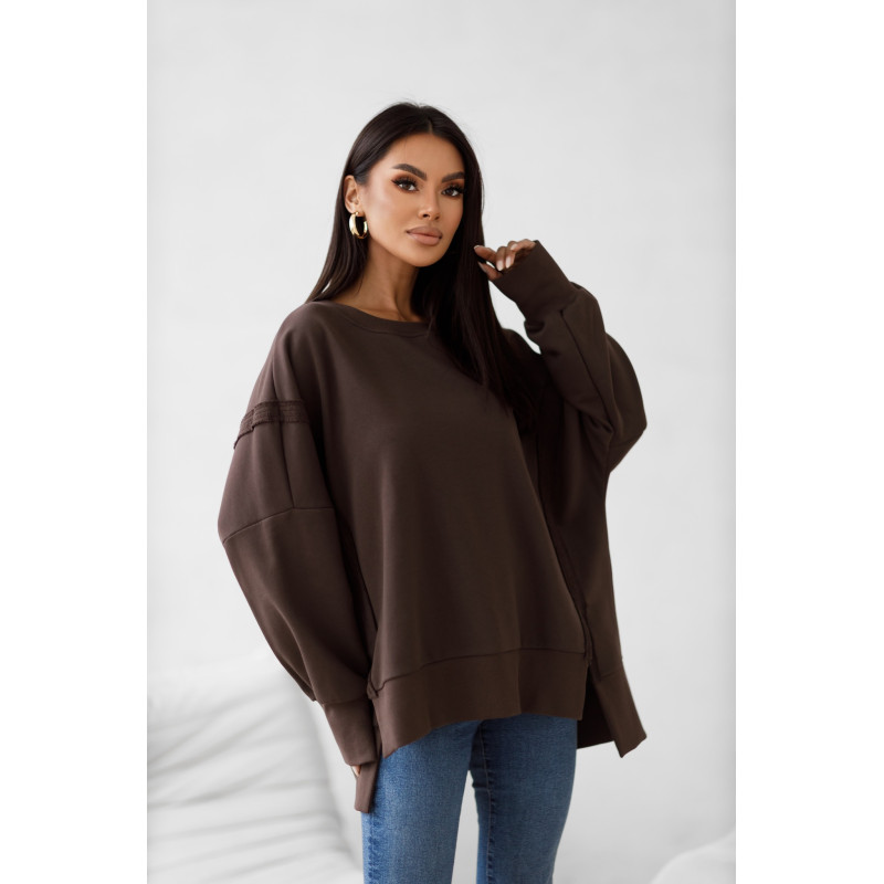 Bluza LONG POLSKIEJ FIRMY Madame Sue to premium produkt w oversizowym kroju z charakterystyczną strukturą otwartych i widocznych przeszyć . Ta bluza to wygoda i styl w jednym, jest idealna na każdy dzień roku i sprawdzi się w wszystkich modowych sytuacjach. Wspaniale prezentuje się z ciepłą kurtką. kamizelką i wysokimi butami.