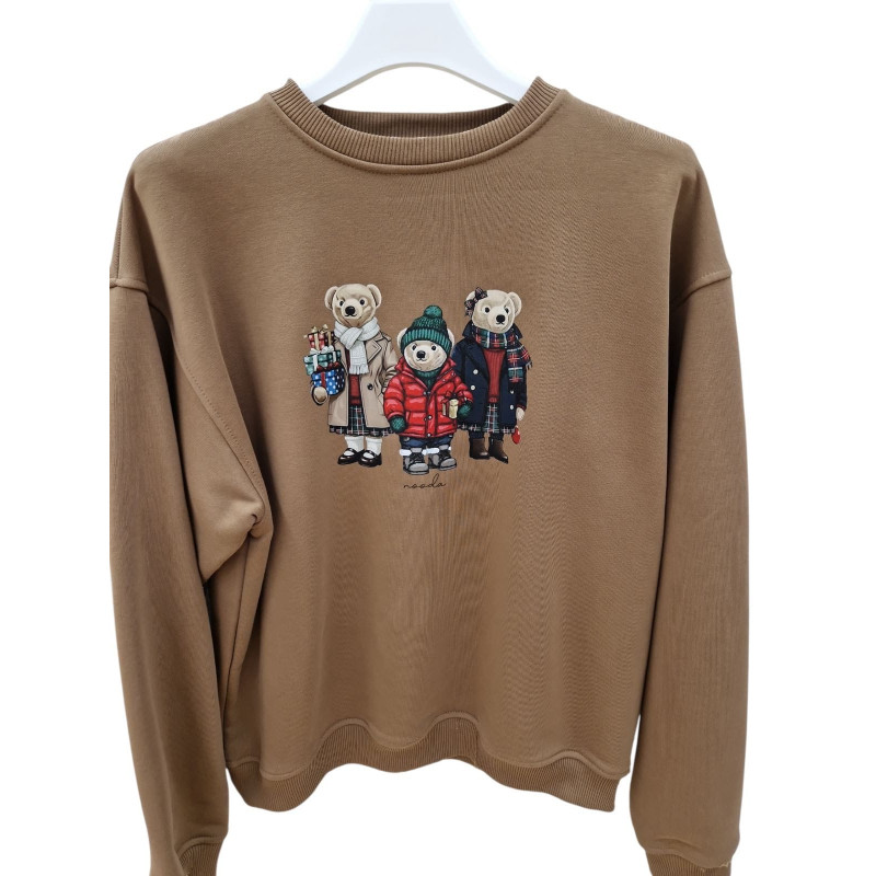 Bluza damska oversize bawełniana ŚWIĄTECZNE MISIE NOODA kamel