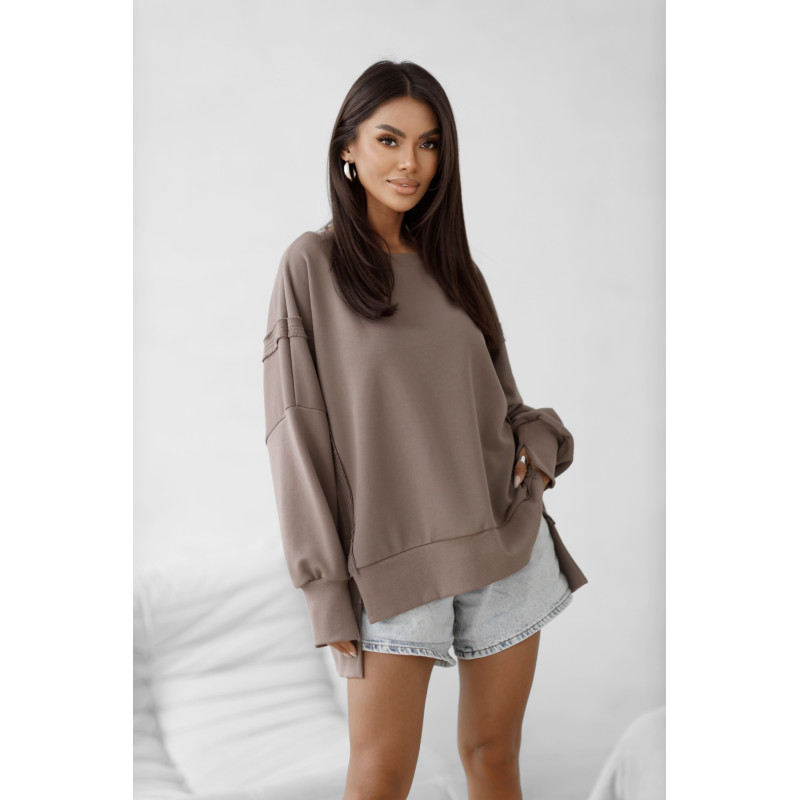 Bluza LONG POLSKIEJ FIRMY Madame Sue to premium produkt w oversizowym kroju z charakterystyczną strukturą otwartych i widocznych przeszyć . Ta bluza to wygoda i styl w jednym, jest idealna na każdy dzień roku i sprawdzi się w wszystkich modowych sytuacjach. Wspaniale prezentuje się z ciepłą kurtką. kamizelką i wysokimi butami.