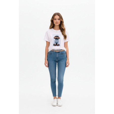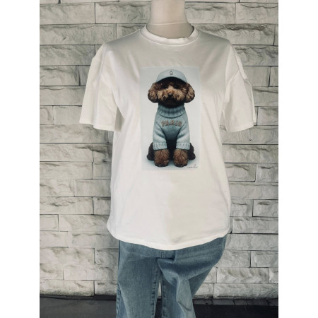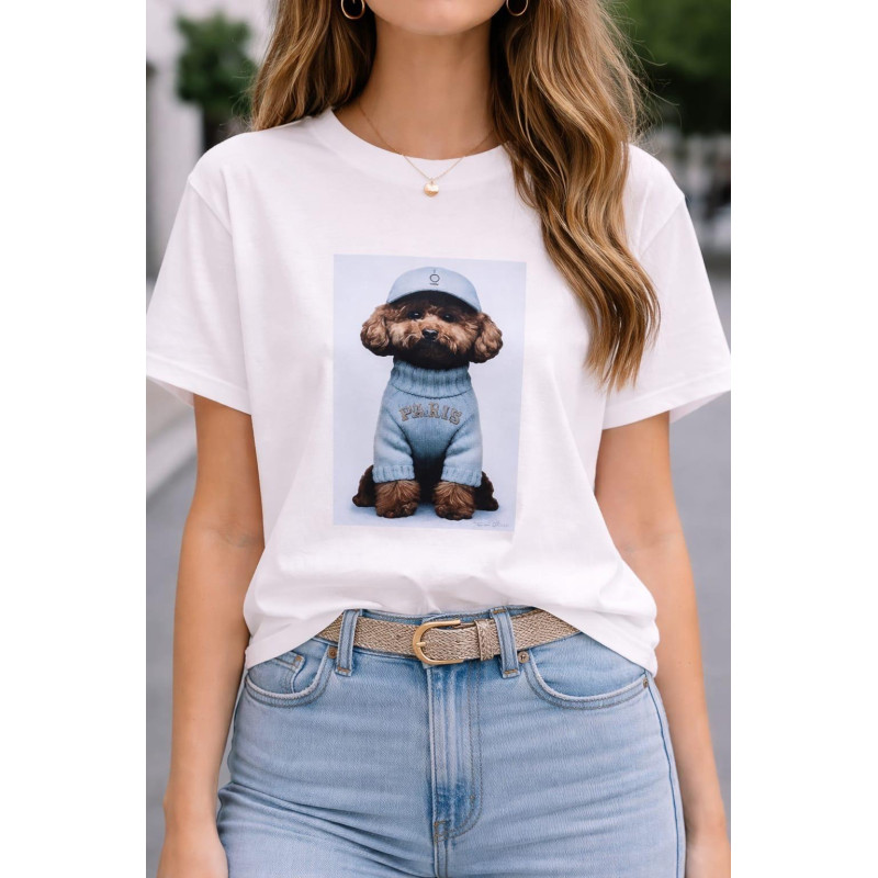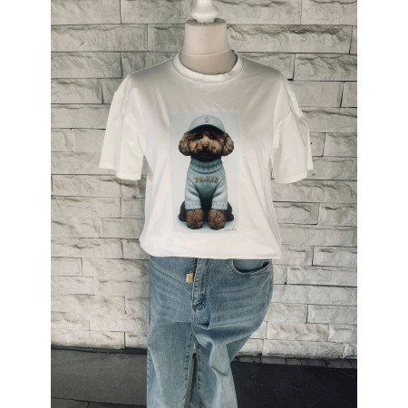 T-shirt damski bawełniany PUDELEK NOODA biały