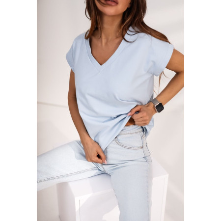 Bawełniany t-shirt V neck to BASIC każdej kobiecej garderoby. Wykonany został w Polsce z wysokiej jakości certyfikowanej bawełny, dzięki czemu jest przyjemny w dotyku i komfortowy i wysokiej jakości, doskonały dla osób z alergią. To doskonała baza do wielu stylizacji