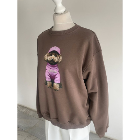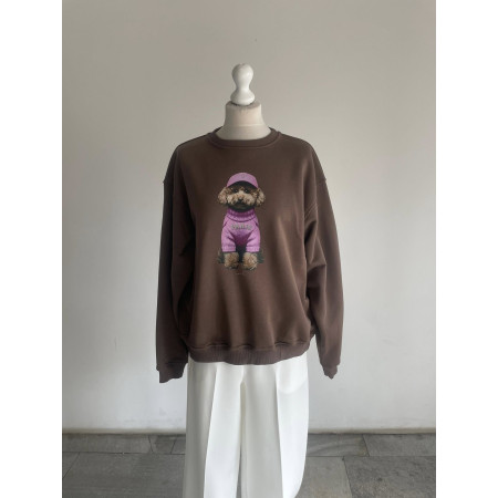 Bluza damska oversize bawełniana Pudelek TOY NOODA brąz/czekolada mleczna