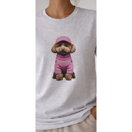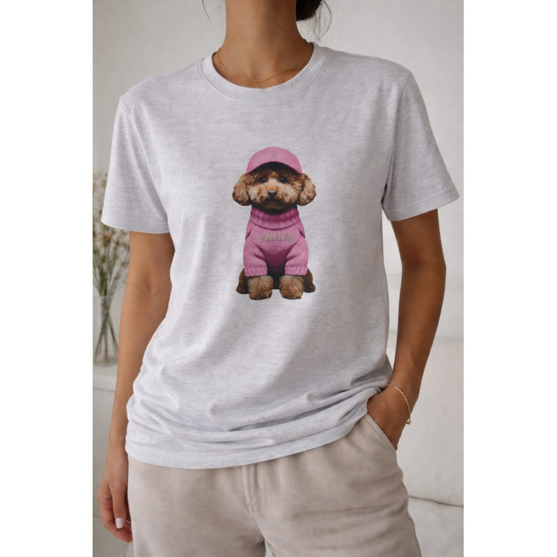 T-shirt damski bawełniany PUDELEK TOY NOODA jasno szary