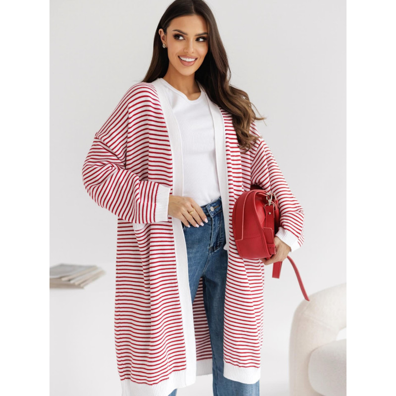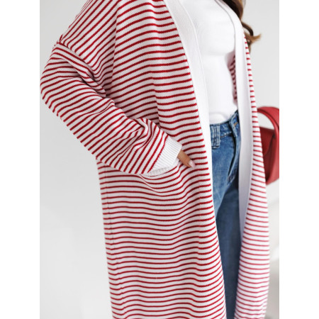 Kardigan damski długi oversize z kieszeniami WHITE RED KISS By o la la