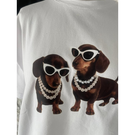 - z przodu znajduje się wysokiej jakości nadruk, i doszyty naszyjnik pereł